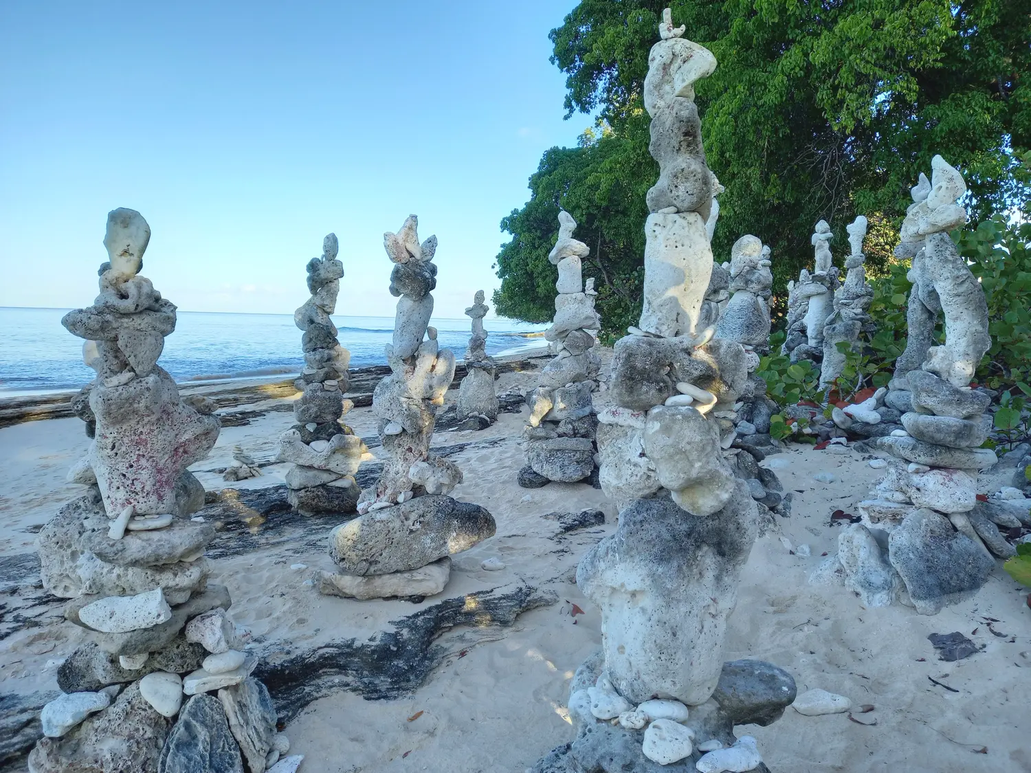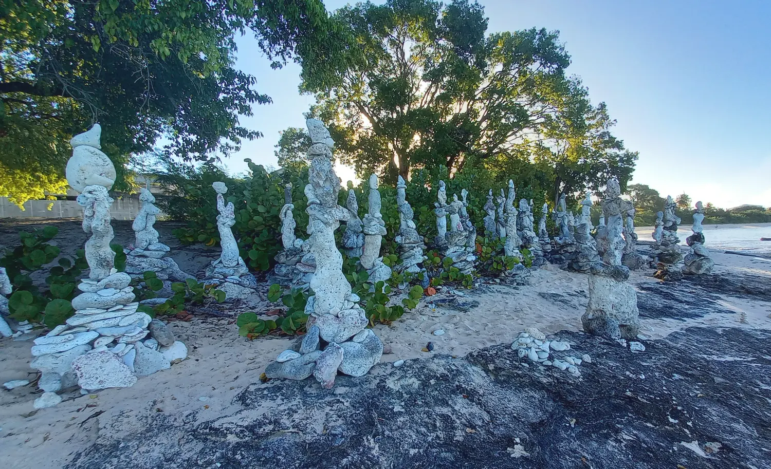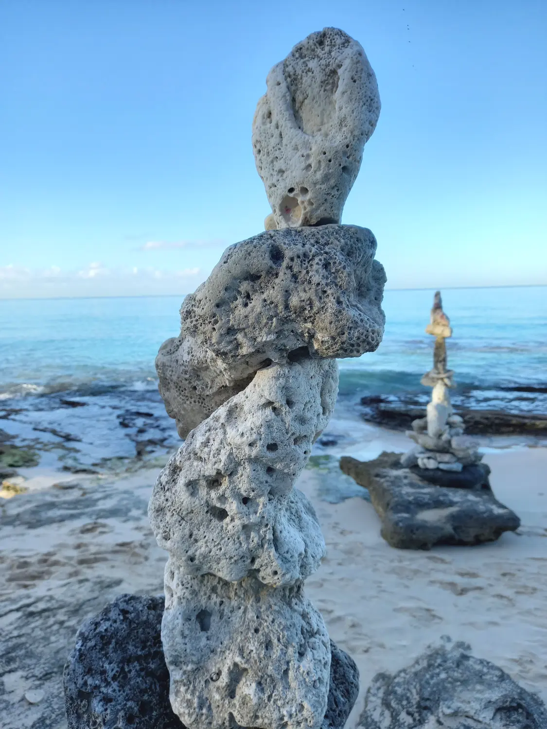 On the tranquil shores of Batts Rock Beach stone statues hold a quiet vigil looking out to sea. Local artist Philip King strategically places and balances the stones, with no glue or other material holding them in place. Some statues are grouped, resembling a family or community, while others stand alone.