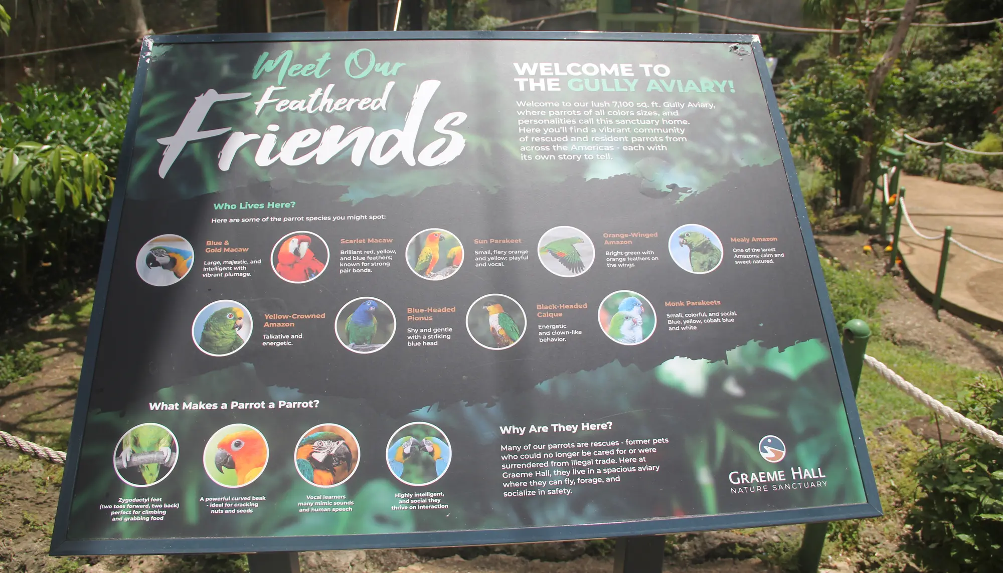 Step into the Gully Aviary and you’ll find yourself surrounded by a kaleidoscope of feathers. Here, parrots from across the Americas swoop and perch in a lively display of color, curiosity, and charm.