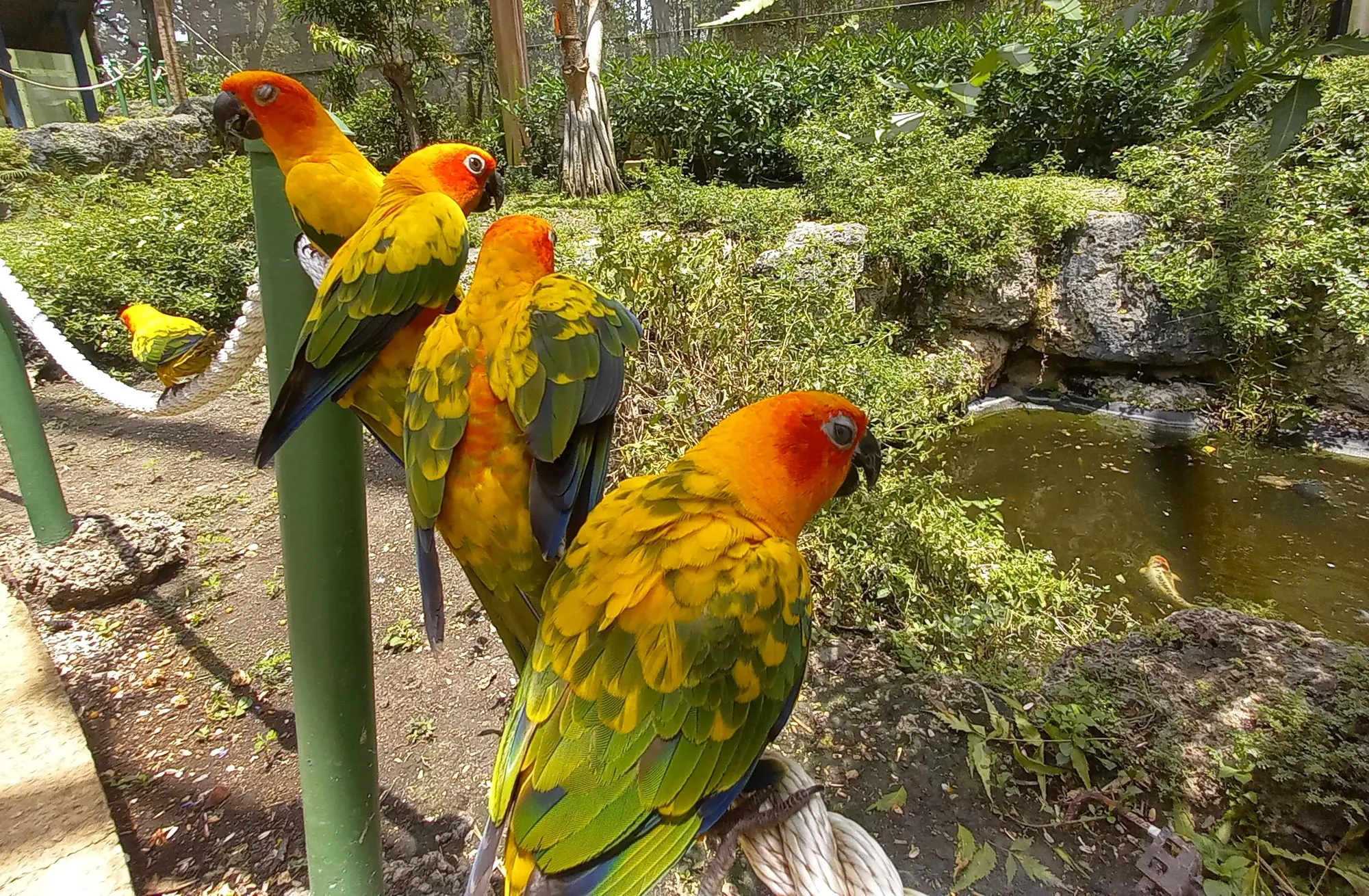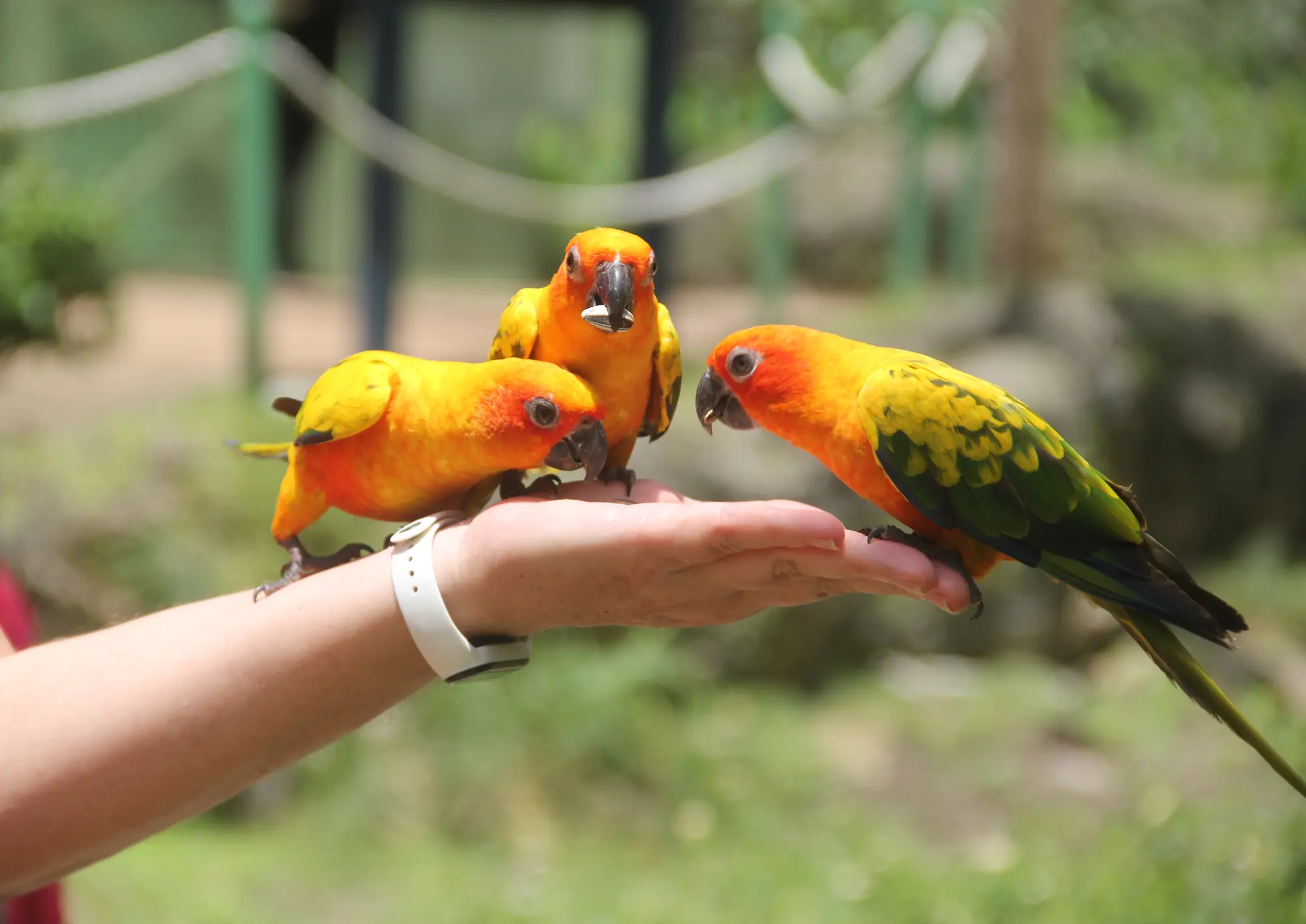 The colorful Sun Parakeets are especially friendly and you can even feed them by hand for an up-close experience of a lifetime!