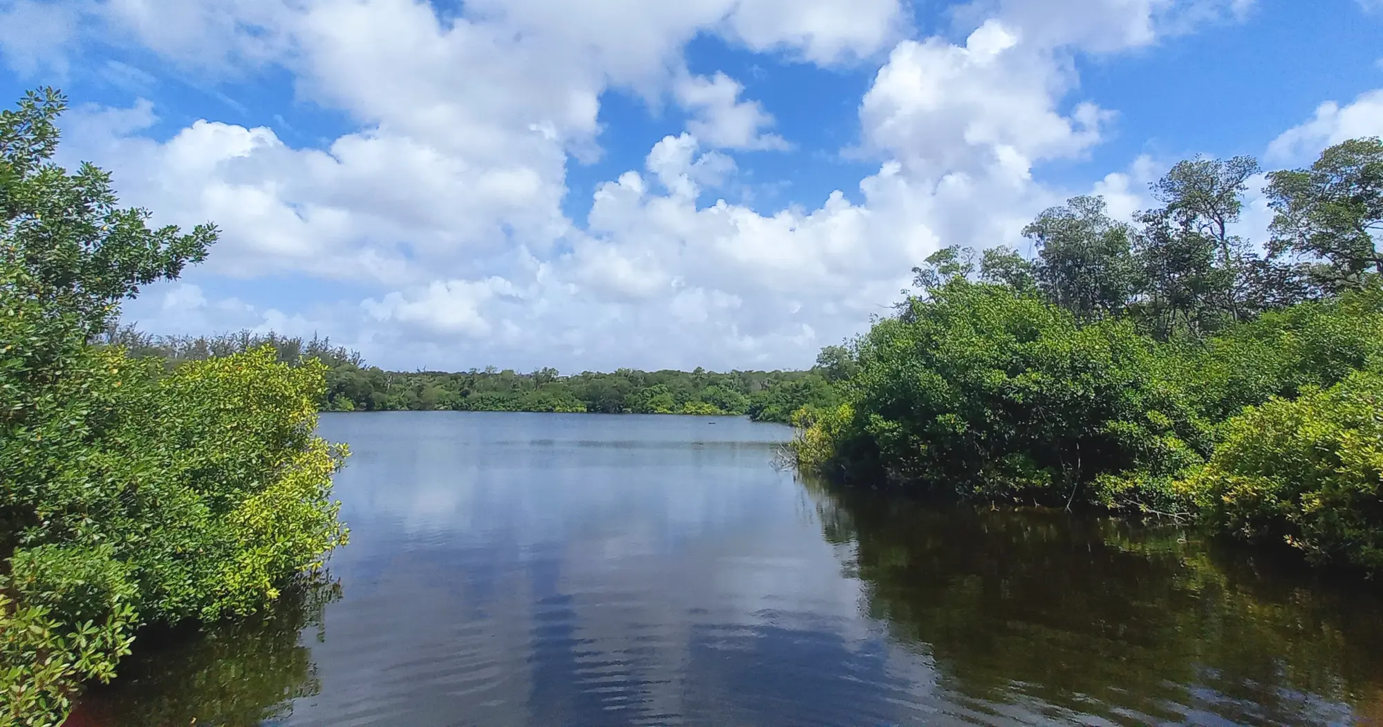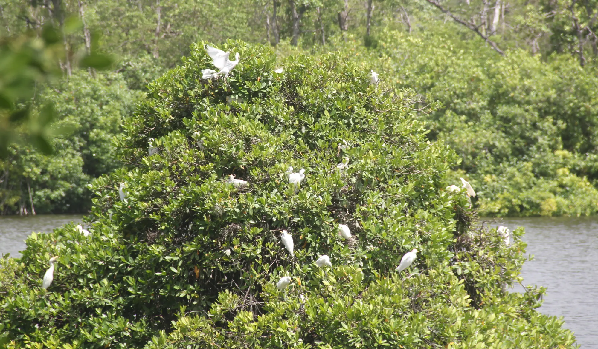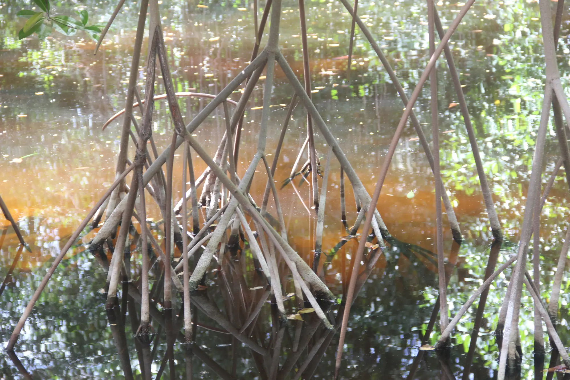 Red Mangroves stretch their roots into the water’s edge, anchoring the land and creating safe nurseries for young fish, crabs, and snails. Further inland, White Mangroves thrive with a quiet superpower - they filter salt from the water through tiny glands on their leaves, helping the ecosystem stay balanced and healthy.