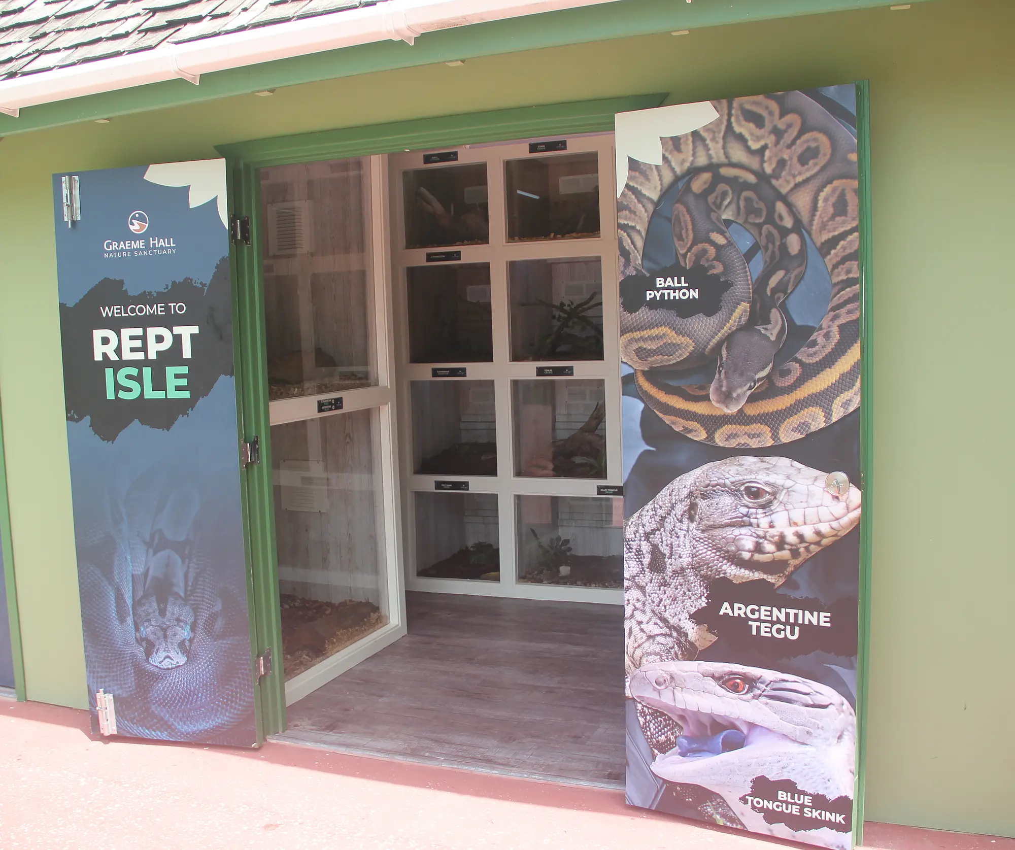 Rept-Isle beckons with a world of scales & tails! This corner of the sanctuary is home to reptiles and amphibians ranging from sleek snakes and curious geckos to lizards, toads, and even scorpions.