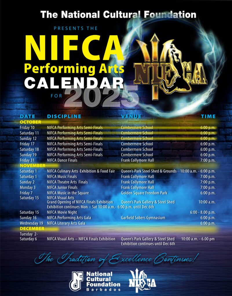 Another highlight of the celebrations is the National Independence Festival of Creative Arts (NIFCA) which showcases the artistic talents of Barbadians. This festival encourages Barbadians of all ages to match their talents in the fields of music, singing, dance, drama, writing, fine art, photography and arts and crafts. The festival runs throughout the month of November and culminates with a gala presentation in which the finalists are featured.